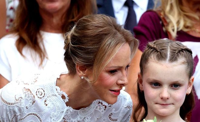 虽然说阿尔贝亲王的脸有母亲的影子,但似乎没有女儿这样立体又完美,所以当已经人到中年的夏琳将头附到女儿身边时,她瞬间便被女儿的出色颜值给秒杀了。
