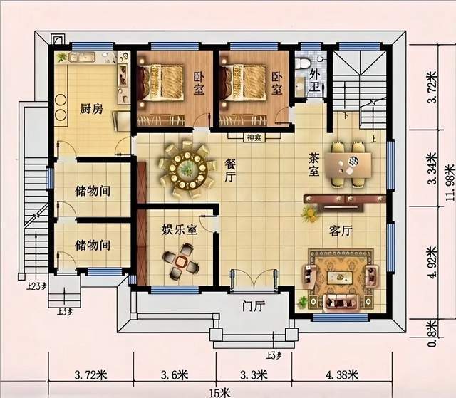 今天,农村小别墅设计师精选经典百搭二层欧式田园风格别墅,28套四开间二层农村自建房别墅!以下我们推出的每套图纸都有详细的尺寸布局,如果里面布局尺寸不满意,还可根据你的要求修改调整内部布局尺寸等,也可以根据你的地基要求量身定做设计,要图纸微我 :农村小别墅设计今天推荐这款二层欧式田园风格别墅,经典百搭,看看你喜欢吗?15米*12米欧式田园风二层别墅,颜值逆天是大多数人的最爱,附图。