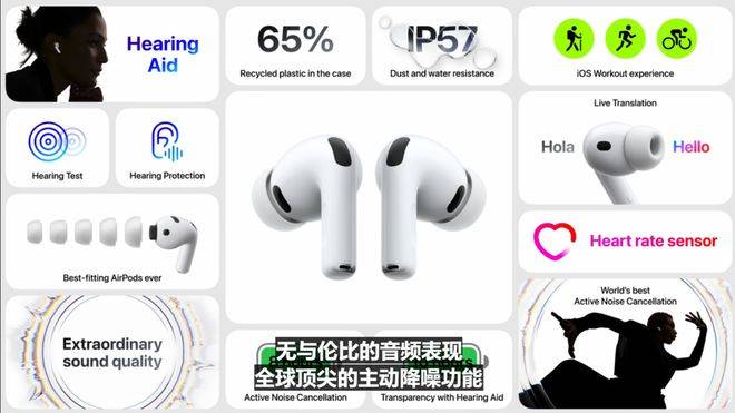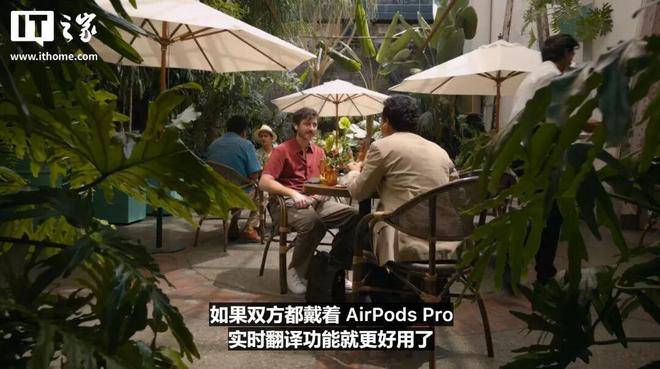 如果双方都佩戴 AirPods Pro 3,则可实时互译,依靠 AirPods 先进的计算音频技术,打破语言壁垒。